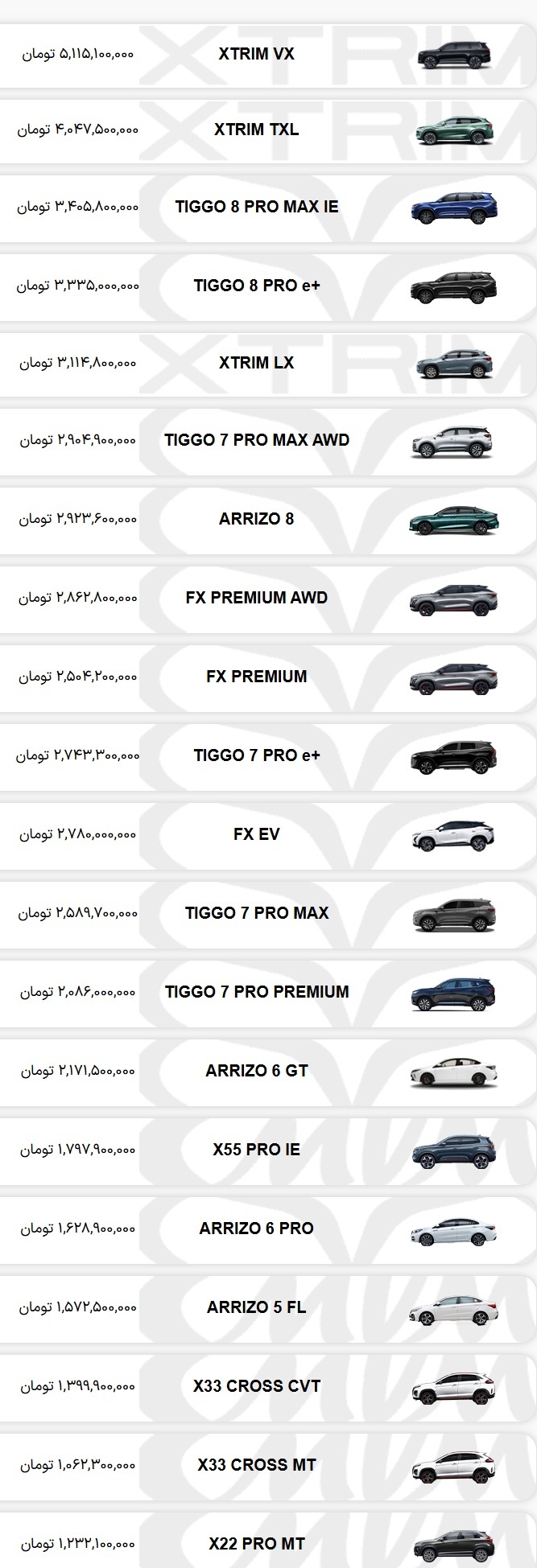 لیست قیمت جدید محصولات مدیران خودرو مهر ۱۴۰۴؛