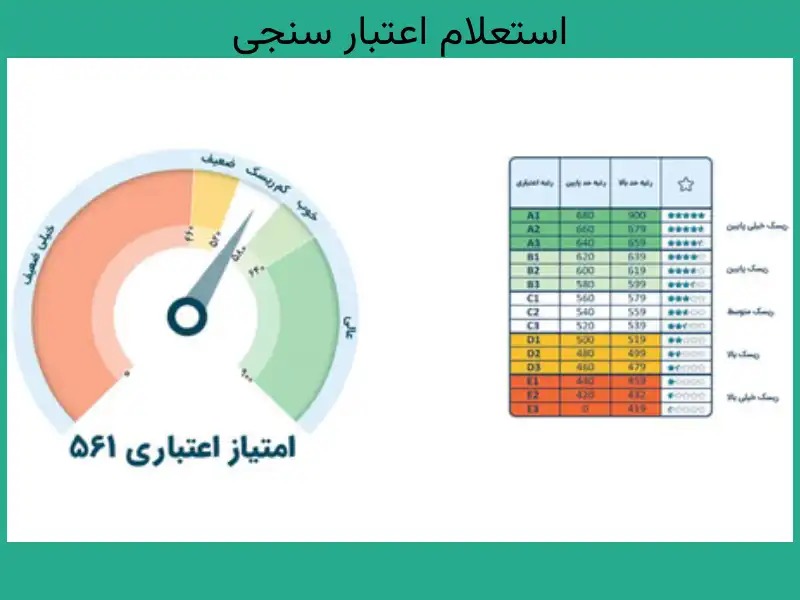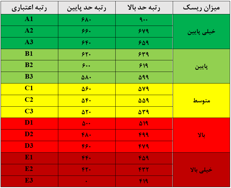 نکته: رتبهبندی با توجه به پارامترهای امتیازی محاسبهشده، وضعیت اعتباری هر شخص را به صورت ریسک خیلی پایین، ریسک پایین، ریسک متوسط، ریسک بالا و ریسک خیلی بالا تفسیر میکند.