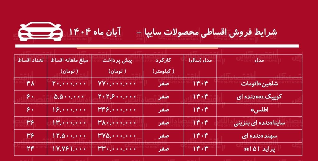اطلس G دندهای با پیشپرداخت ۳۴۶ میلیون تومان و اقساط ۱۶ میلیون تومانی در ۶۰ قسط عرضه شده است. اطلس بهعنوان جدیدترین محصول سایپا، امکانات رفاهی و ایمنی بهروزتری دارد و در این طرح یکی از متعادلترین گزینهها از نظر نسبت پیشپرداخت به قسط ماهانه است.