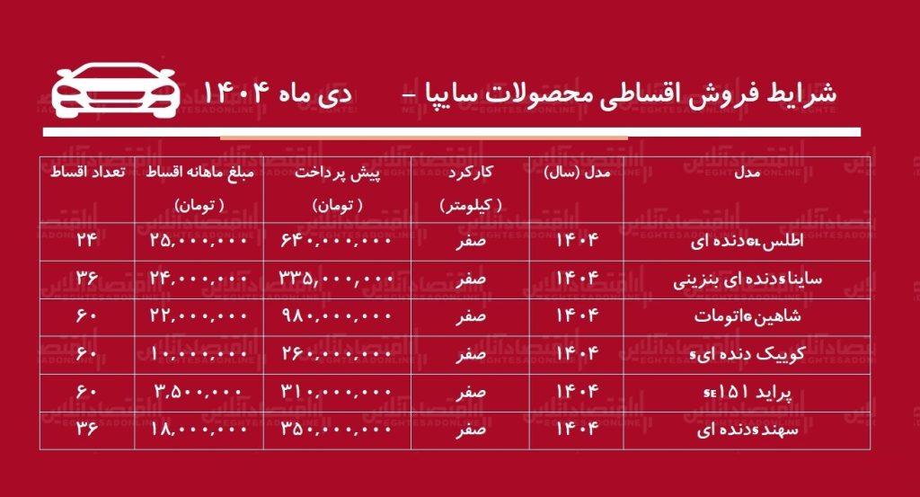 شاهین G اتوماتیک با پیشپرداخت سنگینتر ۹۸۰ میلیون تومان عرضه شده و متقاضیان امکان پرداخت اقساطی با مبلغ ماهانه ۲۲ میلیون تومان در قالب ۶۰ قسط را خواهند داشت.